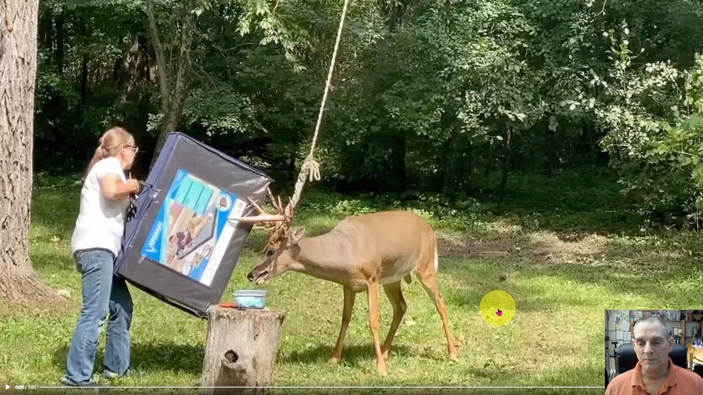 Video 7 finds a deer with its antlers caught in a tree swing.
