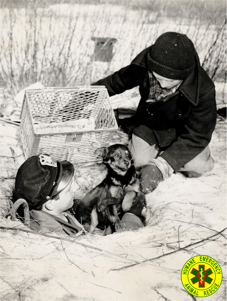 Number 5. This image is an ACME Newspictures- Chicago Bureau dated February 1, 1947. Title: Puppy Rescued “Chicago- Humane Officer Allen Glisch said the pup had apparently been put into the pipe and had become wedged. Young boys heard the dog crying.”