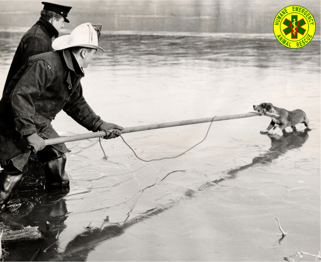 Number 7. I really like this one with the firefighters, pull up boots and a long bunker coat. This image is light on the text. Dated January 22, 1955. “Dog marooned on Lake Barcroft VA. L-R Captain E. G. Brimsley, PVT. W. B. Thomas”