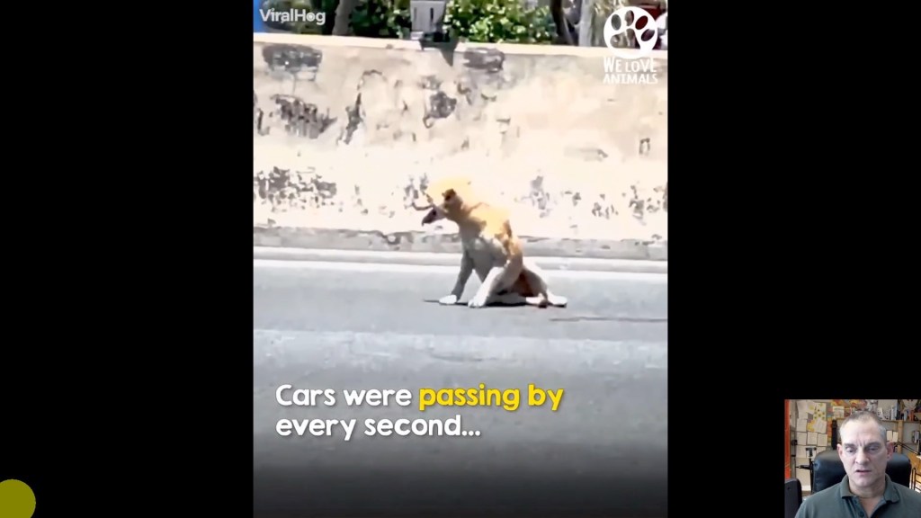 Watch number 20 as a dog hit by a car is rescued off the street.