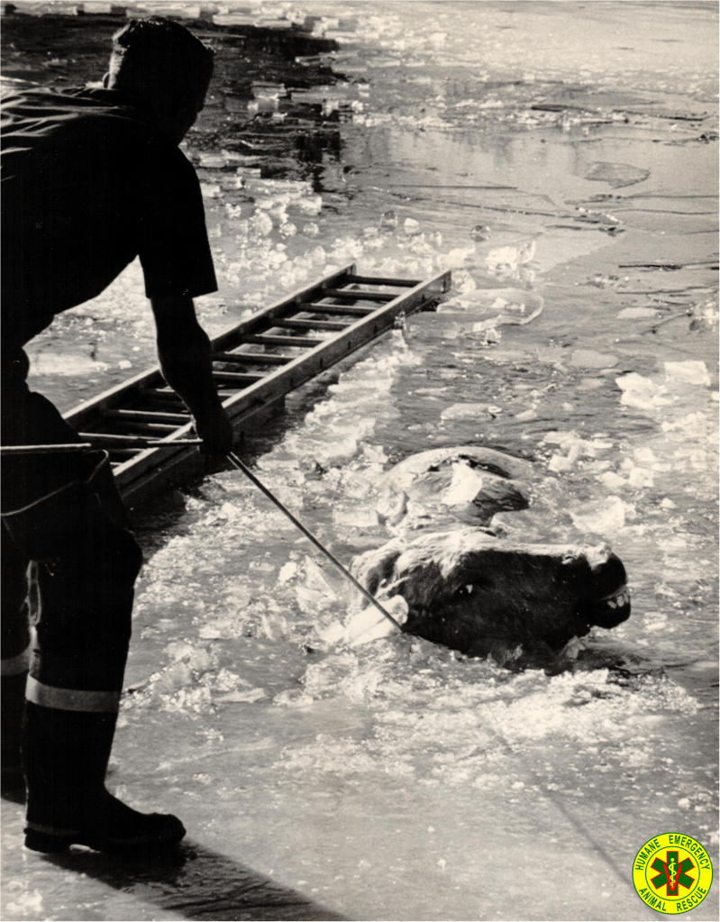 Number 9. AP Wirephoto December 15, 1971 Title: No Horse Power “Greenley, Colo., Firemen answer many strange calls for help beyond their firefighting duties. Firemen came up with a first when they responded to a call for assistance to remove a horse from a lake after the animal had fallen through the ice into cold water up to its neck. Firemen chopped away enough ice to secure a rope on the horse then manpower went to work to save this powerless horse.”