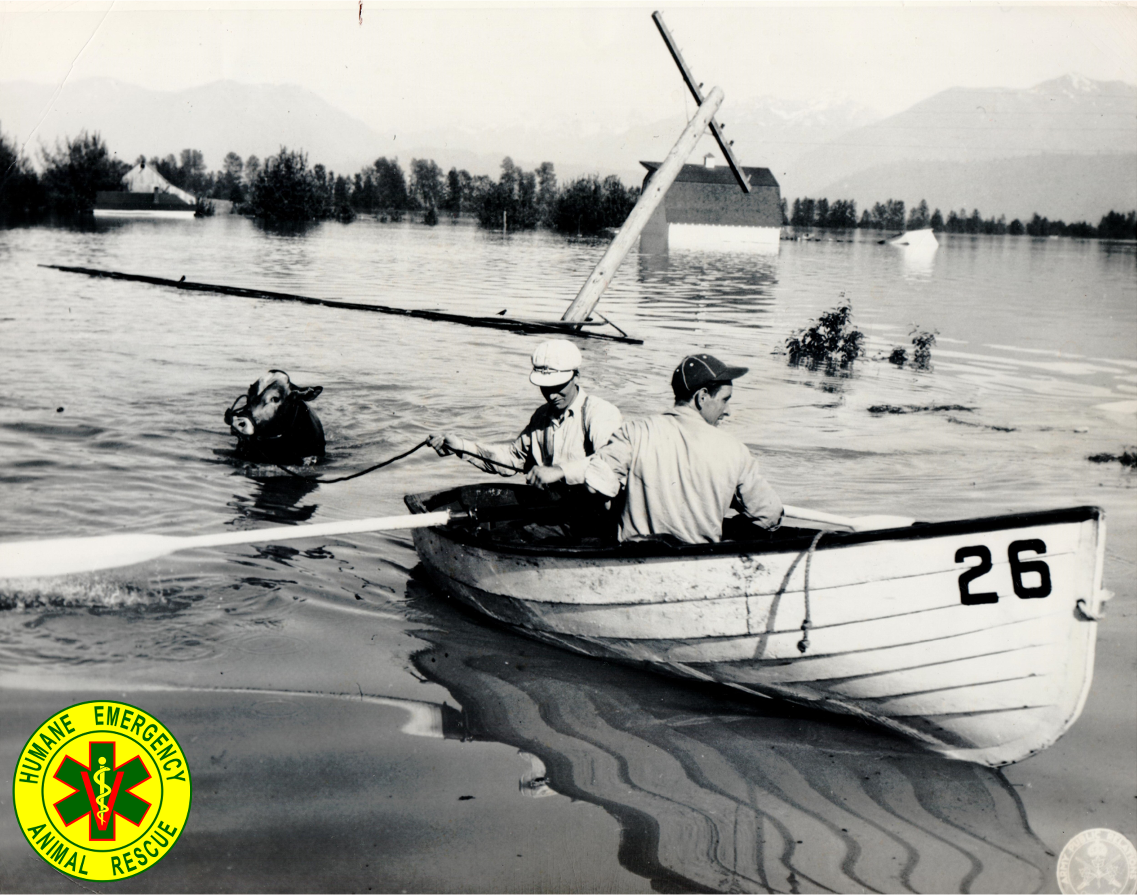 Number 10! This one is from Canada. ACME Newspictures, United Press, Canadian Army Photo from ACME dated June 14, 1948 Title: Amphibious Bull “Chilliwack, B.C., Civilian rescue workers tow a bull to safety after flood waters inundated the area. In some places the water reached a depth of 15 feet. Army Engineers from the Royal Canadian School of Military Engineers of Chilliwack assisted civilians in rescue and evacuation operations.”