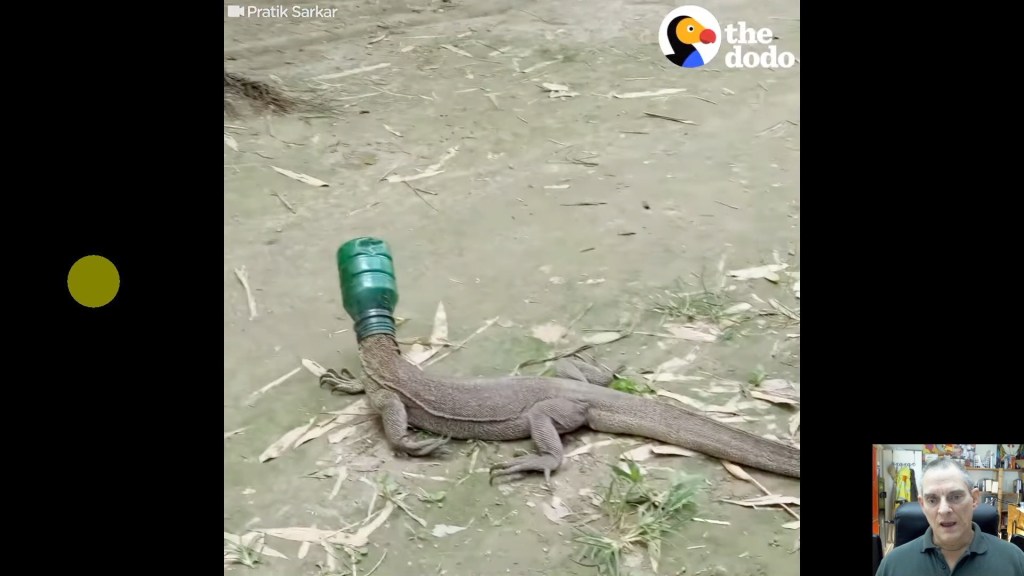 In this episode we see a large lizard with a plastic jar on it’s head get rescued.