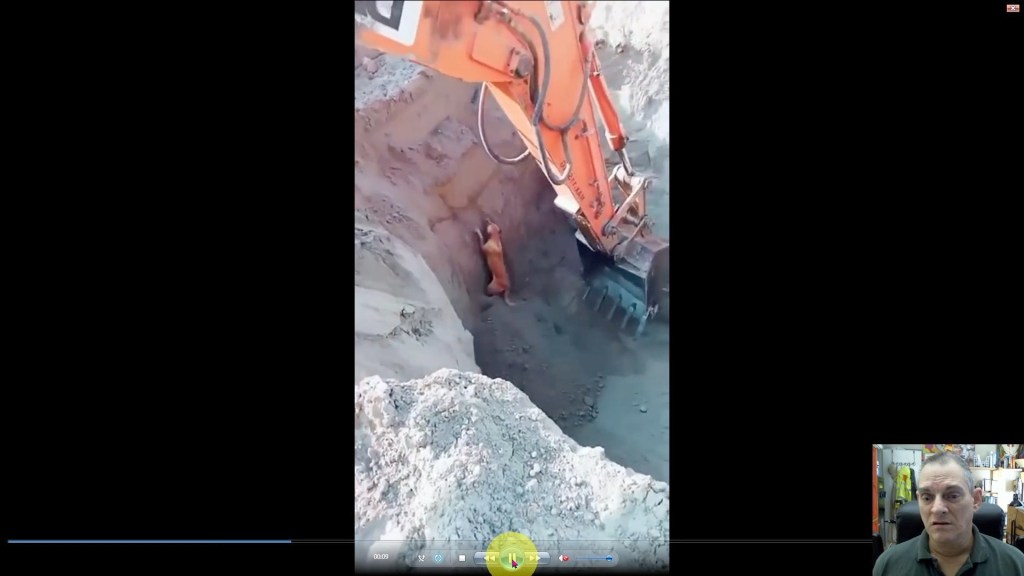 In this episode a dog is rescued from an unstable deep pit with a construction excavator.