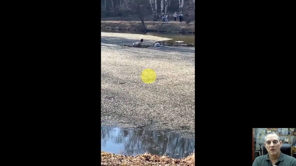 In this episode a dog is rescued from a frozen body of water after sliding off the edge of the ice.