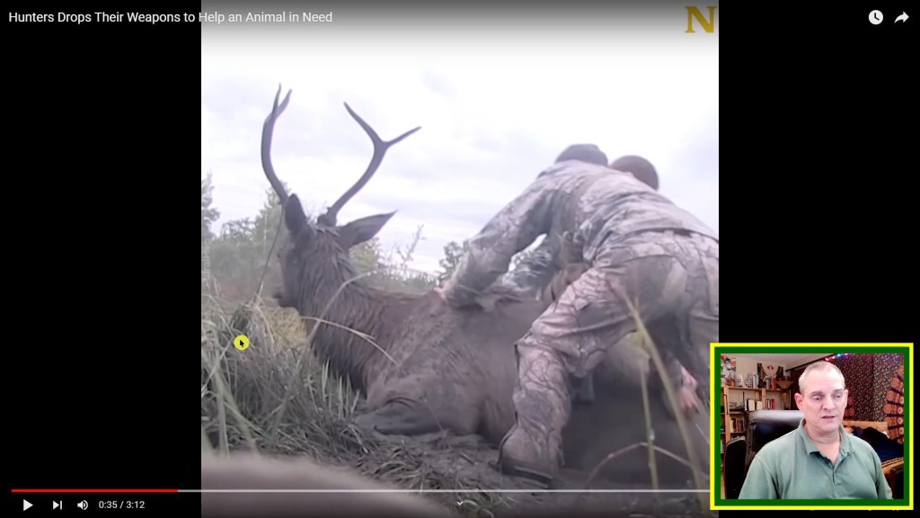 A group of hunters rescue a elk from a mud pit.