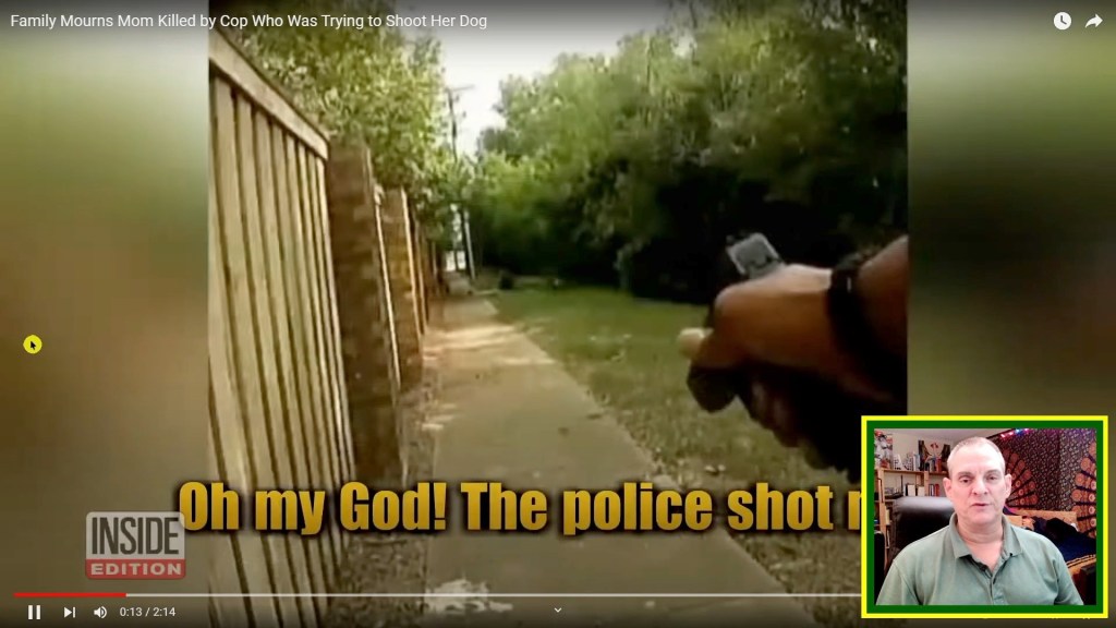This is the most egregious case of police putting the public in danger by disregarding all the firearms safety rules to the point of killing a woman out with her dog. This kind of conduct must stop. Who is next? You? Me? There is no excuse for this killing. None.