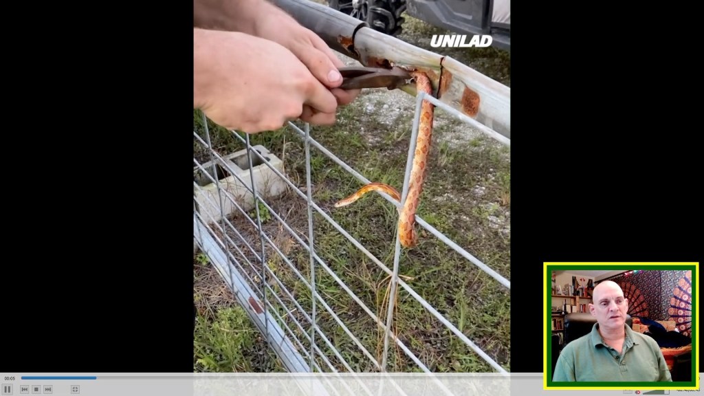 In this video a snake is extricated from the tubing of a gate.